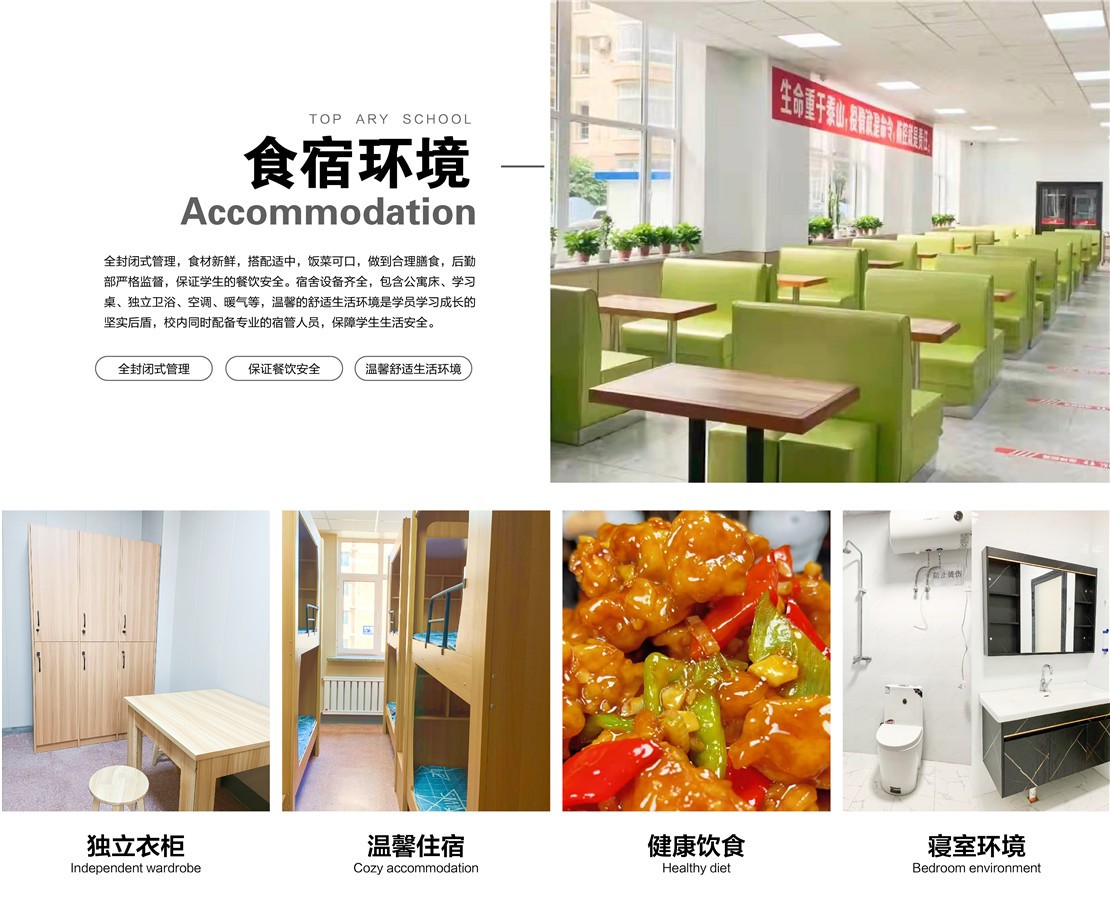 全封閉式管理,干凈衛(wèi)生的食堂環(huán)境,食材新鮮,搭配適中,飯菜可口,菜式豐富,做到合理膳食,后勤部嚴(yán)格監(jiān)督,保證學(xué)生的餐飲安全。宿舍設(shè)備齊全,包含公寓床、學(xué)習(xí)桌、獨(dú)立衛(wèi)浴、空調(diào)、暖氣等,夏天空調(diào)乘涼,冬天暖氣取暖。溫馨的舒適生活環(huán)境是學(xué)員學(xué)習(xí)成長(zhǎng)的堅(jiān)實(shí)后盾,校內(nèi)同時(shí)配備專業(yè)的宿管人員,保障學(xué)生生活安全。