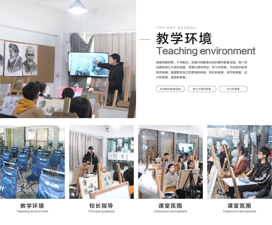 畫(huà)室寬敞明亮,干凈整潔。教室內(nèi)皆配備先進(jìn)的硬件配套設(shè)施,每個(gè)班級(jí)擁有獨(dú)立大面積教室,教室與教室之間隔音效果較好,課堂紀(jì)律有保證,學(xué)習(xí)效率高,為優(yōu)質(zhì)的教學(xué)提供保障。畫(huà)室配有獨(dú)立的素描教研室、色彩教研室、速寫(xiě)教研室、設(shè)計(jì)教研室、造型教研室。