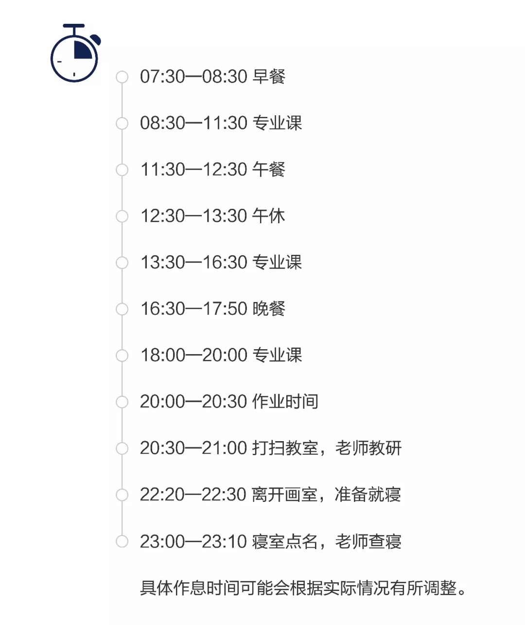 周日白天休息,可在畫室畫畫,也可以外出購買必須物品,18點前必須返校。